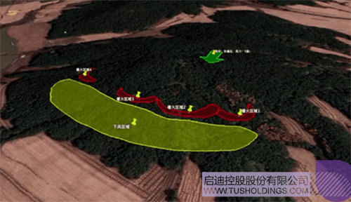 森林火情發(fā)生時(shí),火勢(shì)兇猛,人員無法靠近,救援人員難以迅速掌握整個(gè)火場形勢(shì),因此在制定救援方案上會(huì)受到很多約束。如果此時(shí)快速獲得火場態(tài)勢(shì)圖,即集合三維地理信息、風(fēng)力風(fēng)向氣象信息、火情火勢(shì)信息、人員分布信息等重要因素于一體,則可以全面掌握整體情況。風(fēng)向突變是造成森林消防員意外死亡的重要因素,通過態(tài)勢(shì)圖可以評(píng)估下風(fēng)方向危險(xiǎn)區(qū)域,推演出火情走向趨勢(shì),根據(jù)火場附近村莊或建筑分布制定出疏散和撲打計(jì)劃,為決策提供及時(shí)準(zhǔn)確的信息支撐,同時(shí)會(huì)在滅火救援上也會(huì)減少不必要的犧牲。