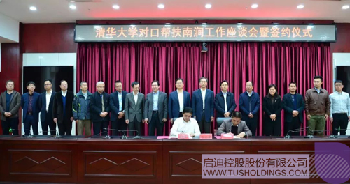 在清華大學的指導下,為了實現南澗縣的脫貧致富目標,啟迪控股常務副總裁、啟迪科服董事長王書貴與南澗縣縣長王紹基分別代表啟迪科服和南澗縣簽訂戰略合作框架協議;陳禹代表啟迪分別與南澗縣教育局局長楊映元、縣扶貧辦主任孔世崑簽訂南澗教育扶貧基金和產業扶貧基金托管協議;啟迪科服副總經理何煥榮與云南土林茶業有限公司董事長李朝君簽訂啟迪科服并購該公司框架協議。