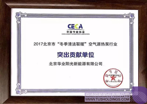 2018年3月, 2017北京市“冬季清潔取暖”空氣源熱泵行業(yè)總結(jié)表彰會在京隆重舉行,華業(yè)陽光成為首批榮獲“2017年北京市‘冬季清潔取暖’突出貢獻(xiàn)單位”稱號的企業(yè)。