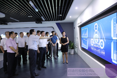 朱偉市長一行還參觀考察了啟迪控股數字展廳,進一步了解了啟迪控股的發展歷程、主營業務與核心競爭力,以及在“科技園區、科技實業、科技金融”三大業務領域所取得的主要成效,并對此給予充分肯定。